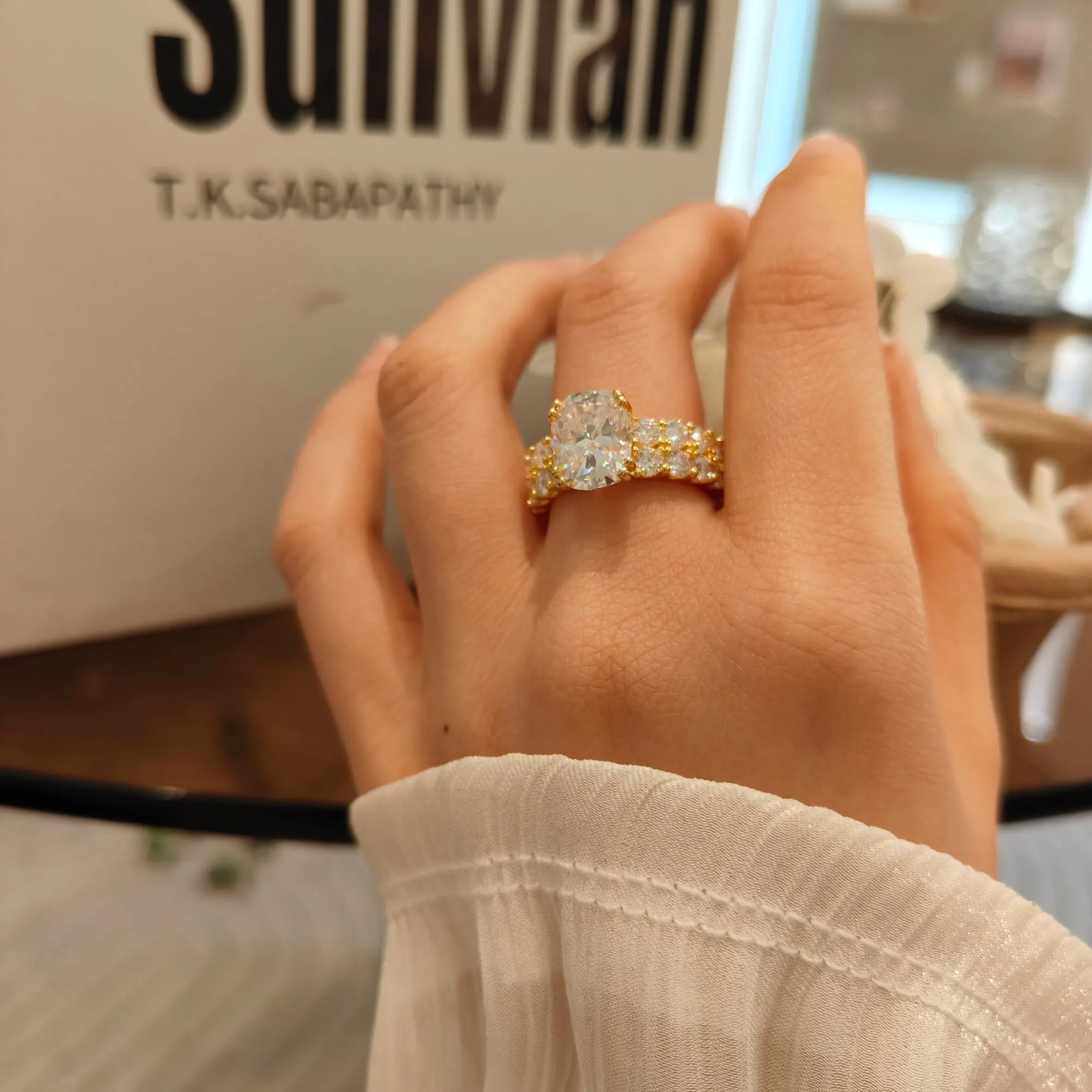 Um anel impecável, a pedra é grande e brilhante! O único arrependimento é que perdemos o preço com desconto, mas o anel é tão lindo! Eu não me importa mais.